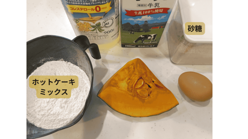 今回は、かぼちゃとホットケーキミックスを使った混ぜて焼くだけ!簡単おやつをご紹介します。